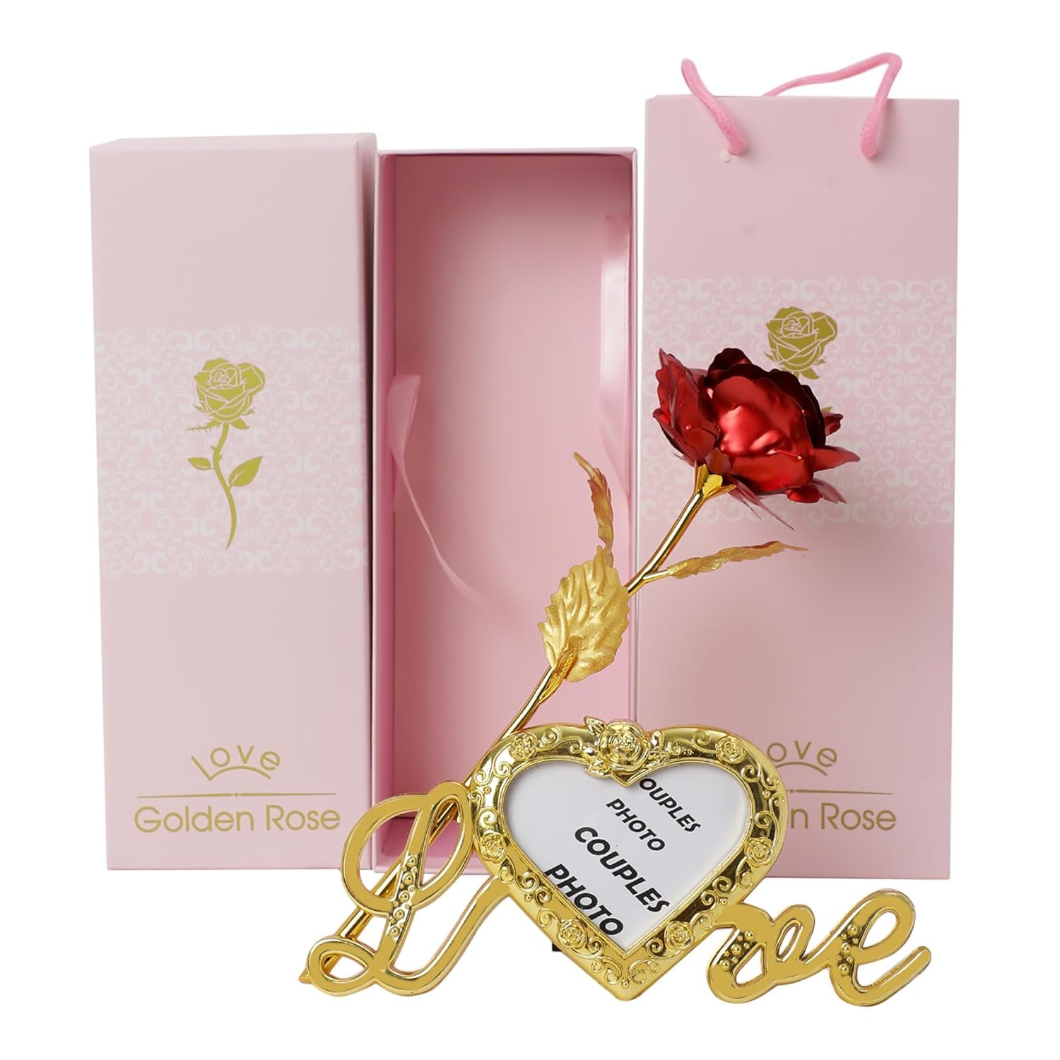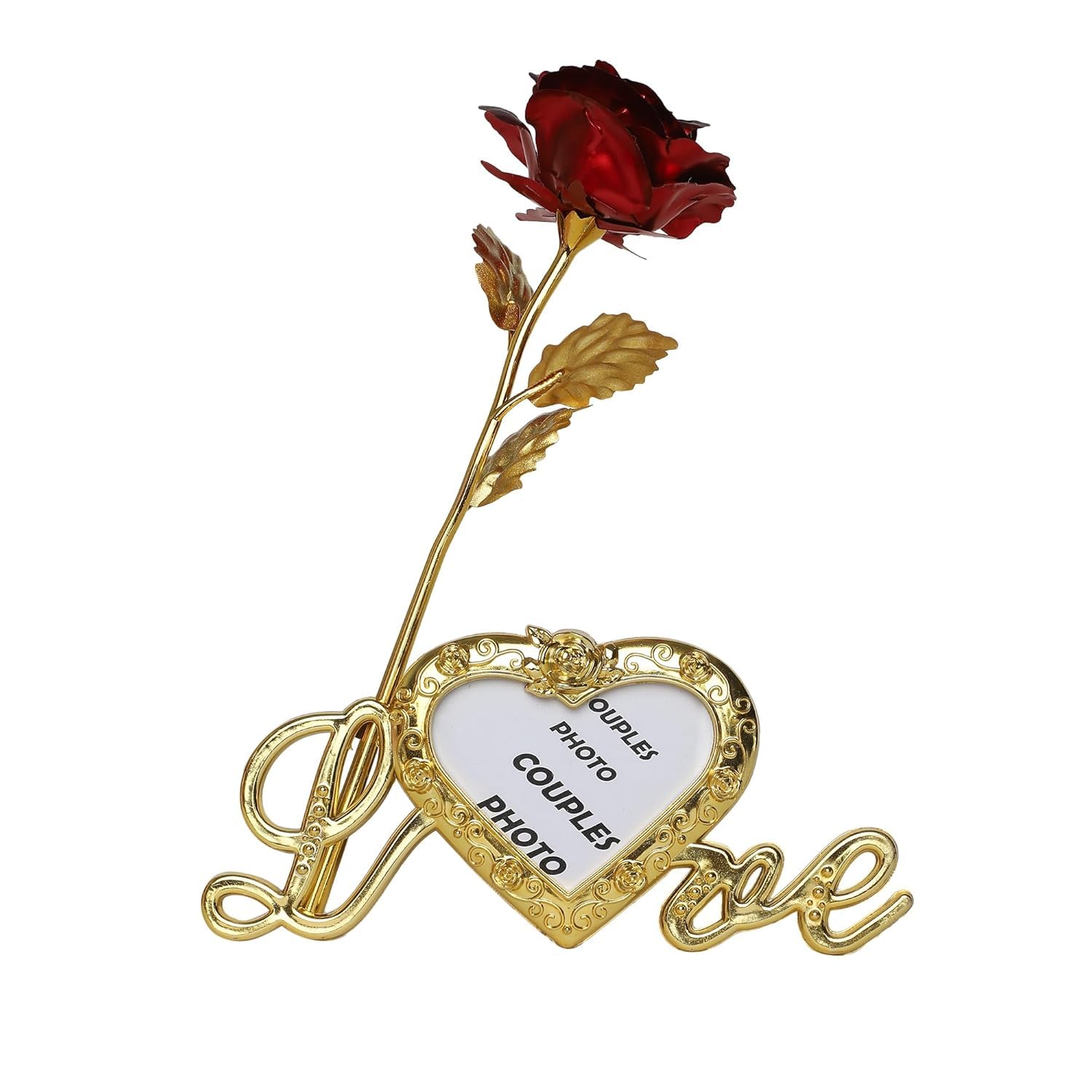 Artificial Red Rose Flower With Golden Leaf With Photo Frame