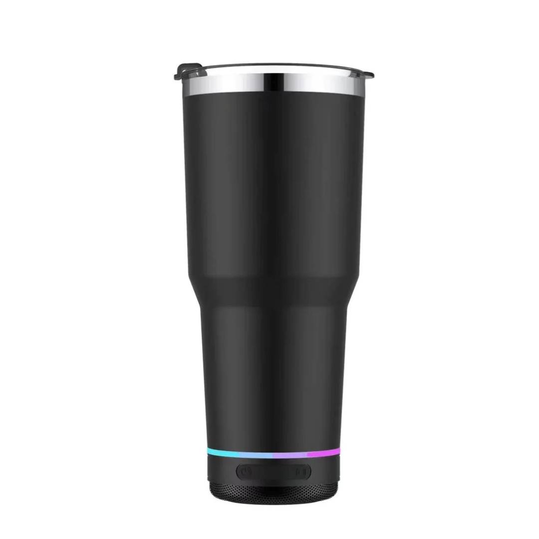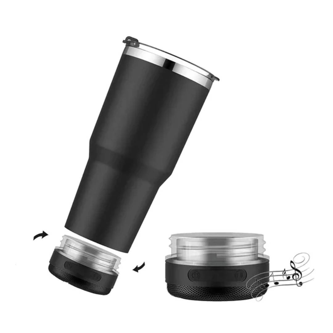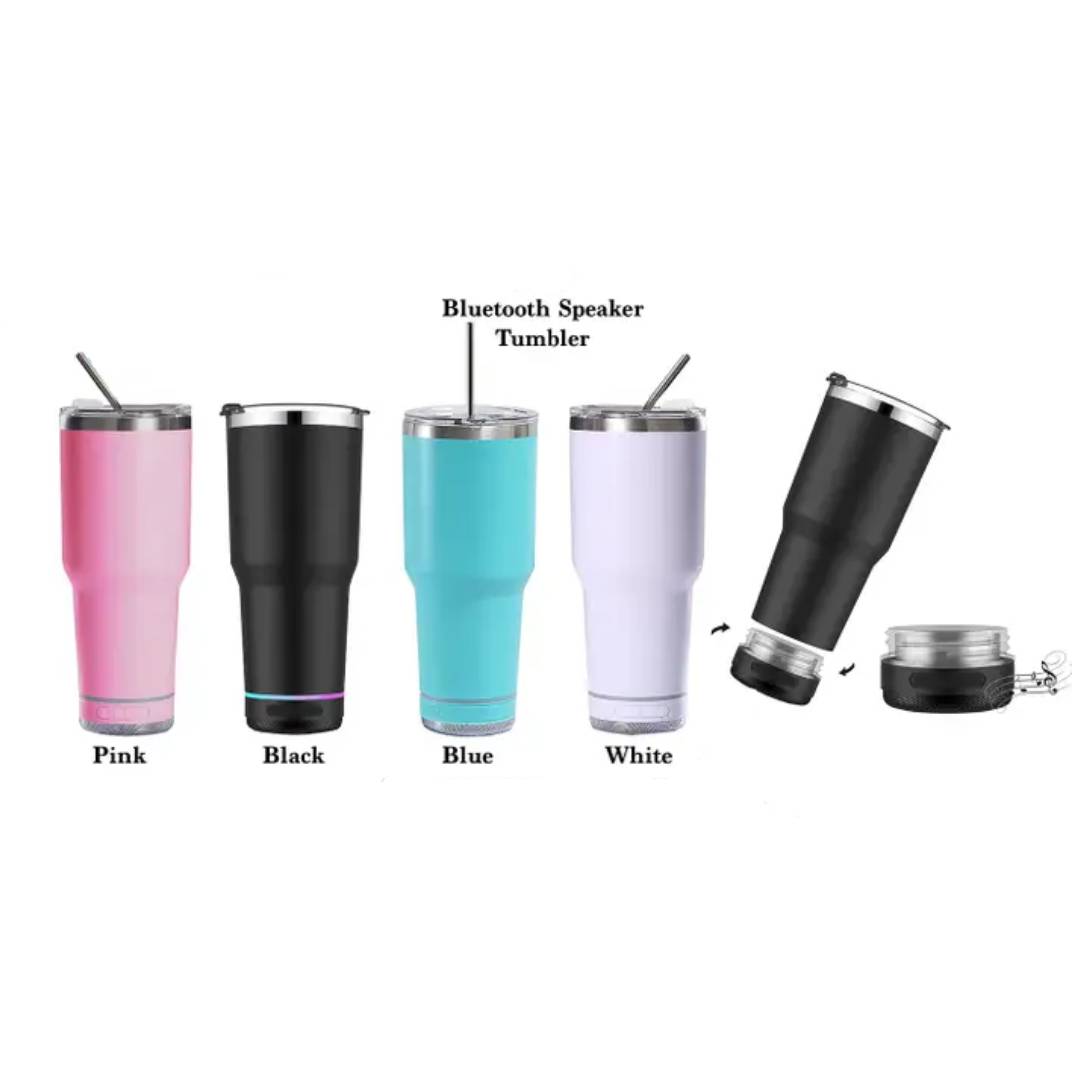 Play music straight from your cup! This 30oz Speaker Tumbler is made of stainless steel and includes a detachable Bluetooth speaker.