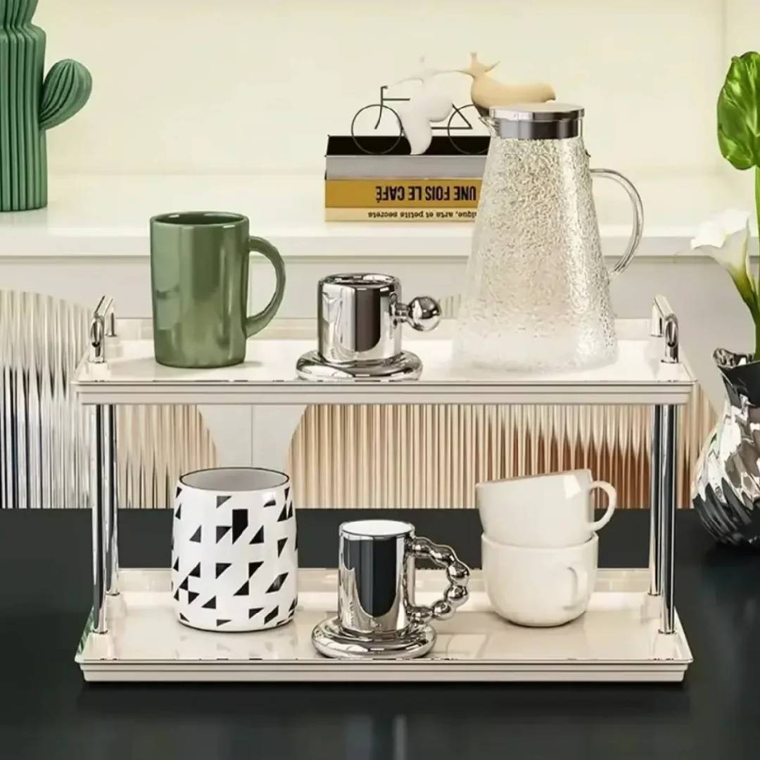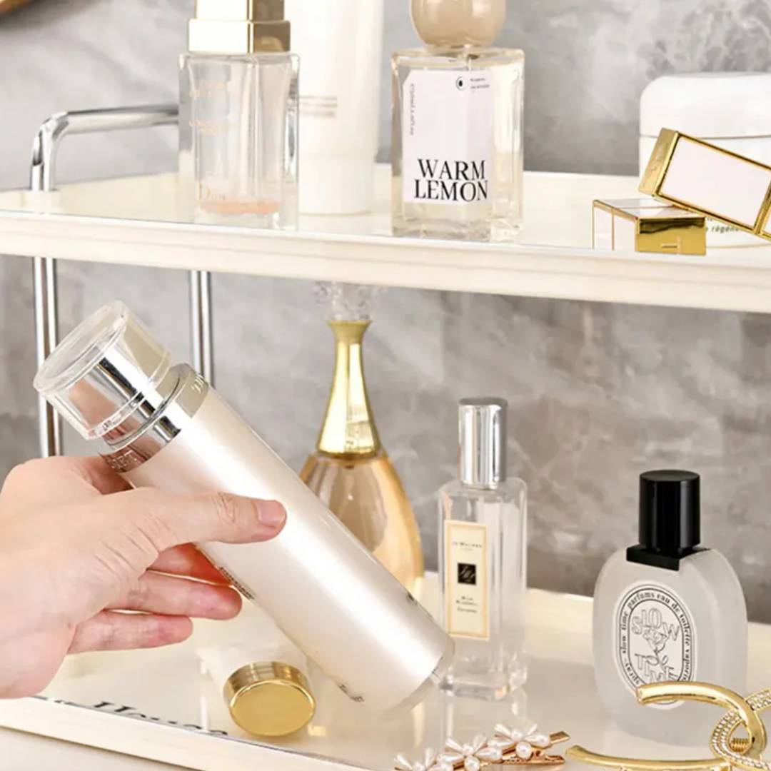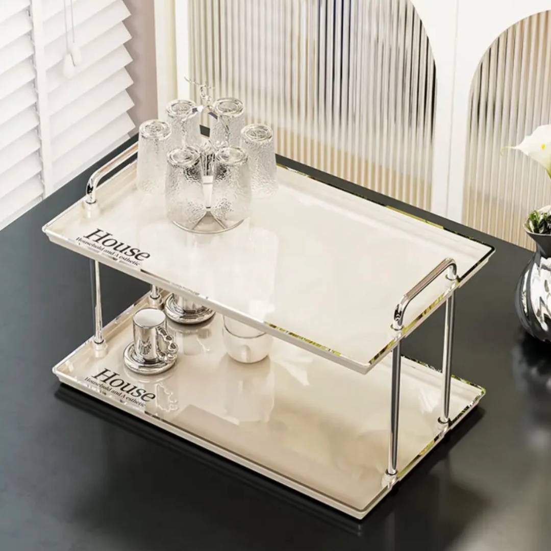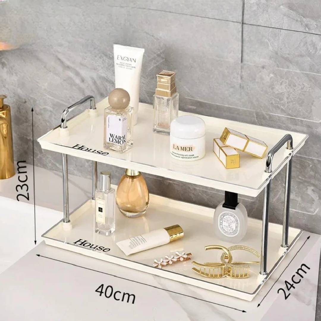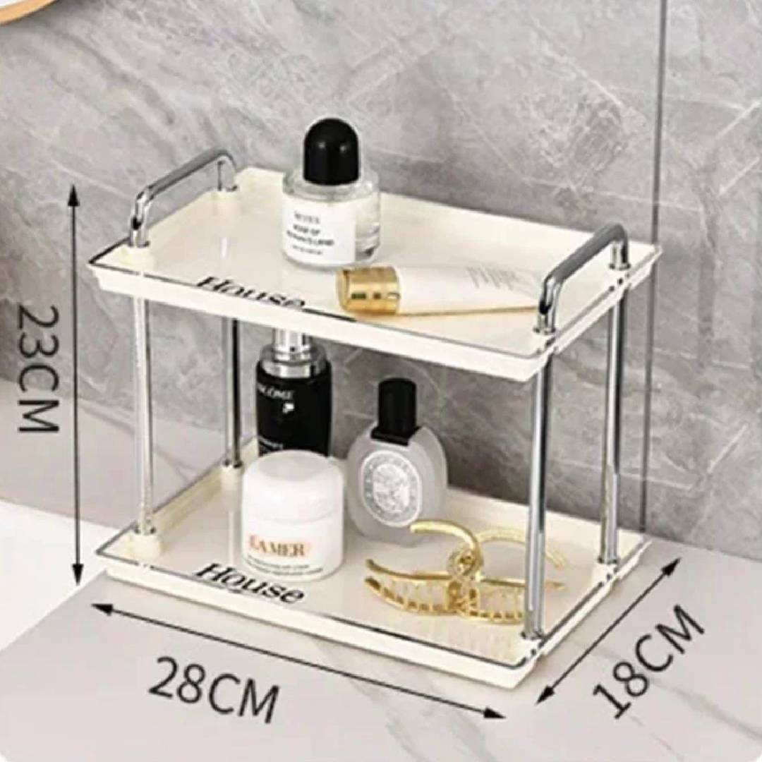 Double Layer Luxury Acrylic Shelf With Aluminum Rod Storage Rack Desktop Tray Storage Rack Desktop Rack Bathroom Organizer