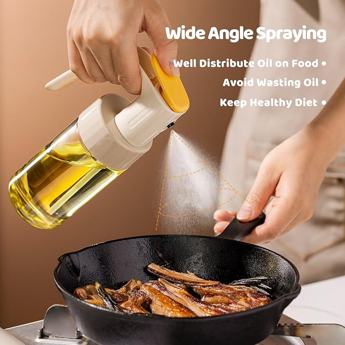VERSATILE - The glass oil sprayer is extremely versatile and can be used for a wide range of applications. Works with varieties of cooking liquids such as olive oil, avocado oil, soy sauce, wine, canola oil...... The cooking oil sprayer for kitchen makes frying, grilling, baking, seasoning, salad dressing, air frying, following calorie-controlled recipes easier.