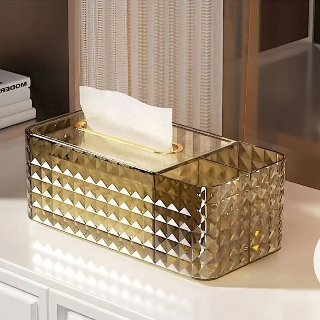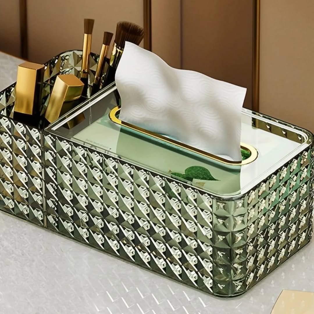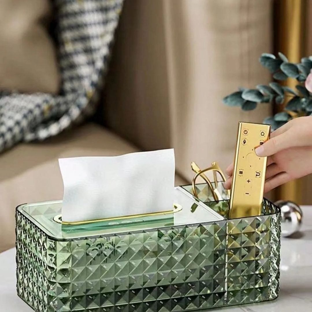 - This luxurious tissue box comes with a convenient storage rack for your remote control, mobile phone, and glasses.