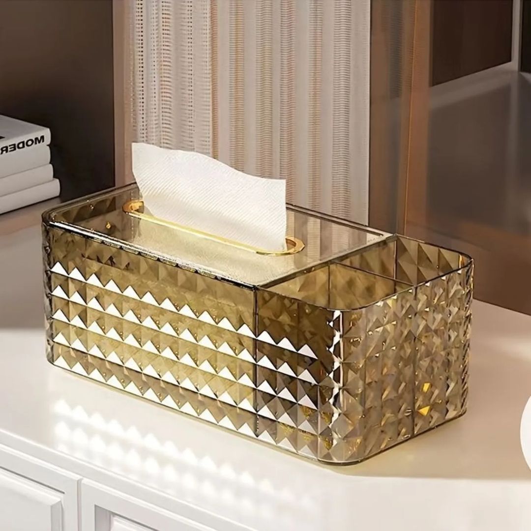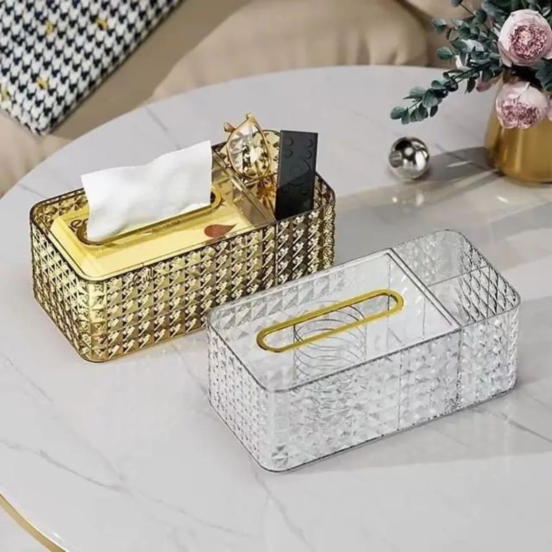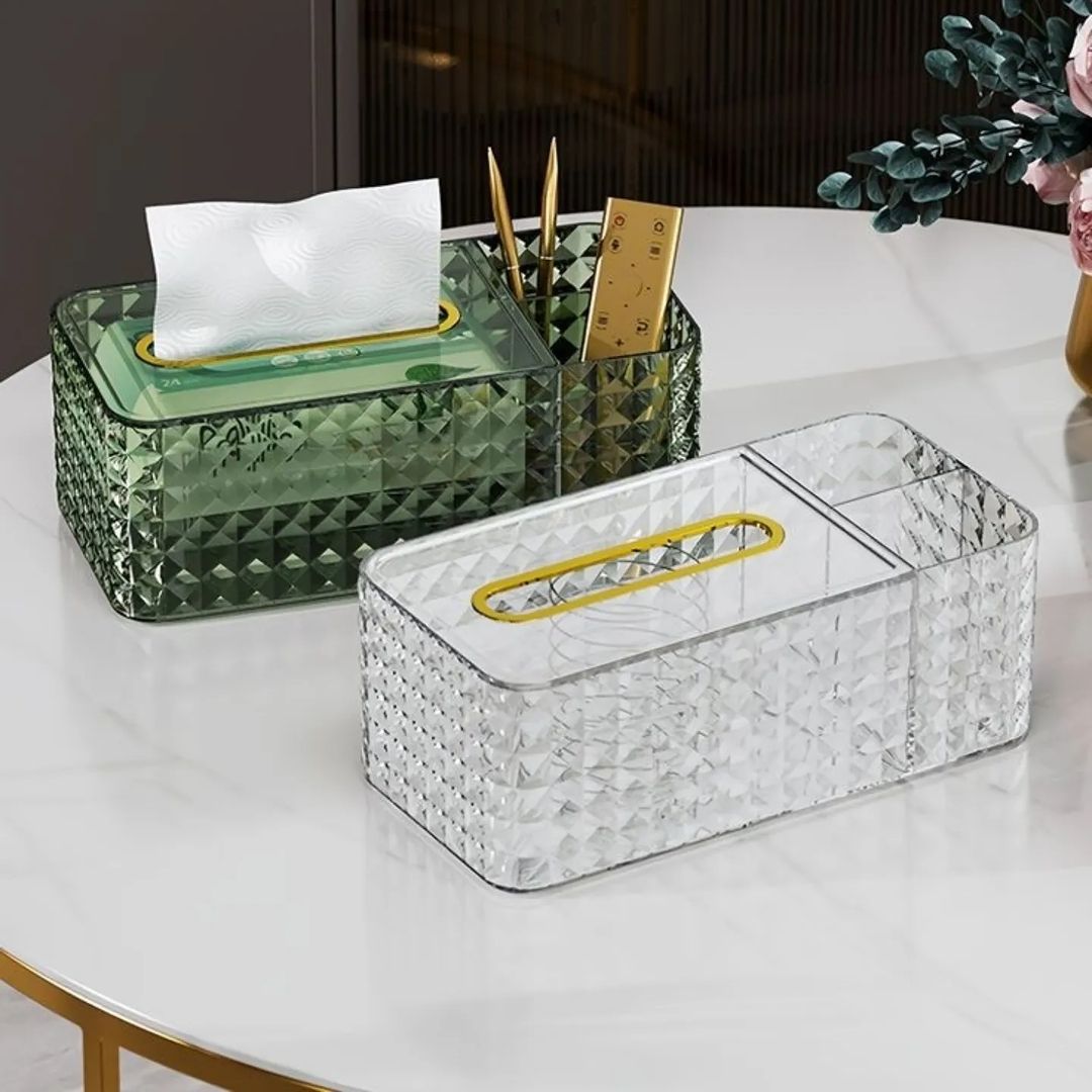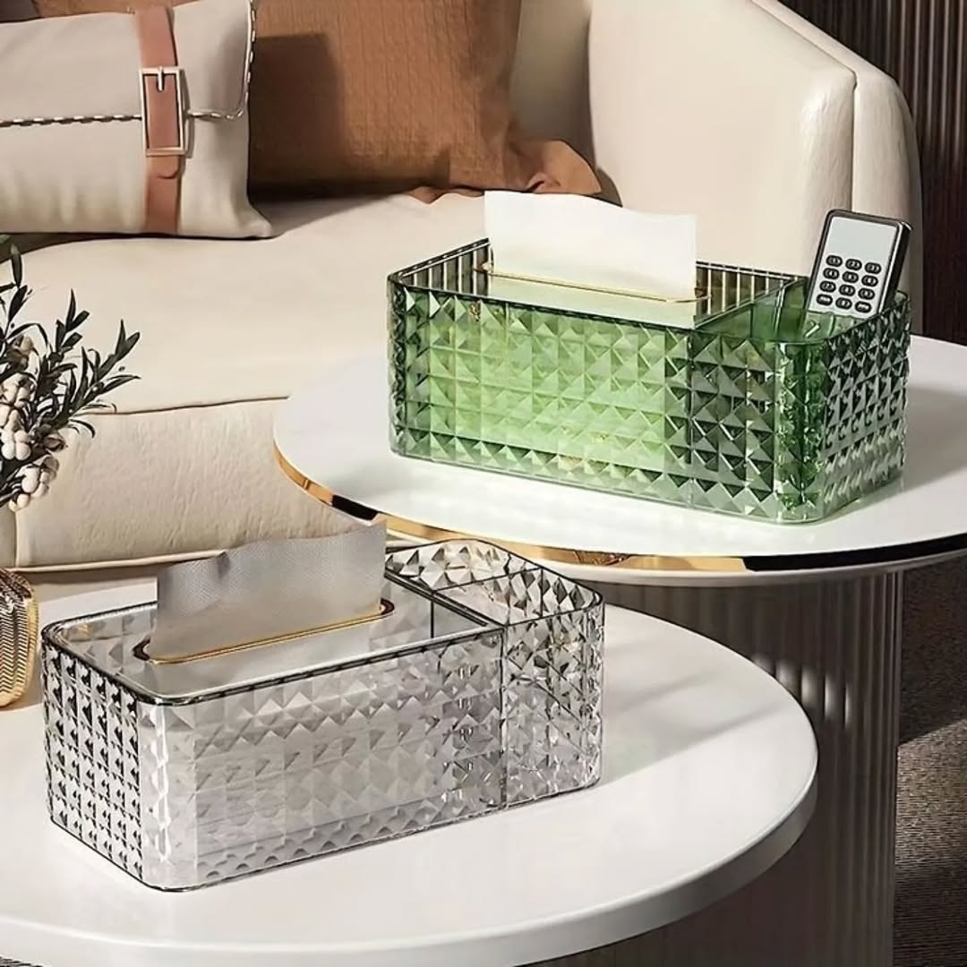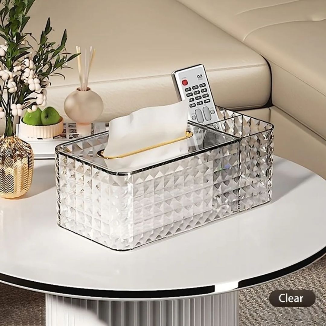 Luxury Diamond Pattern Acrylic Transparent Tissue Box With Stationary Remote Control Holder