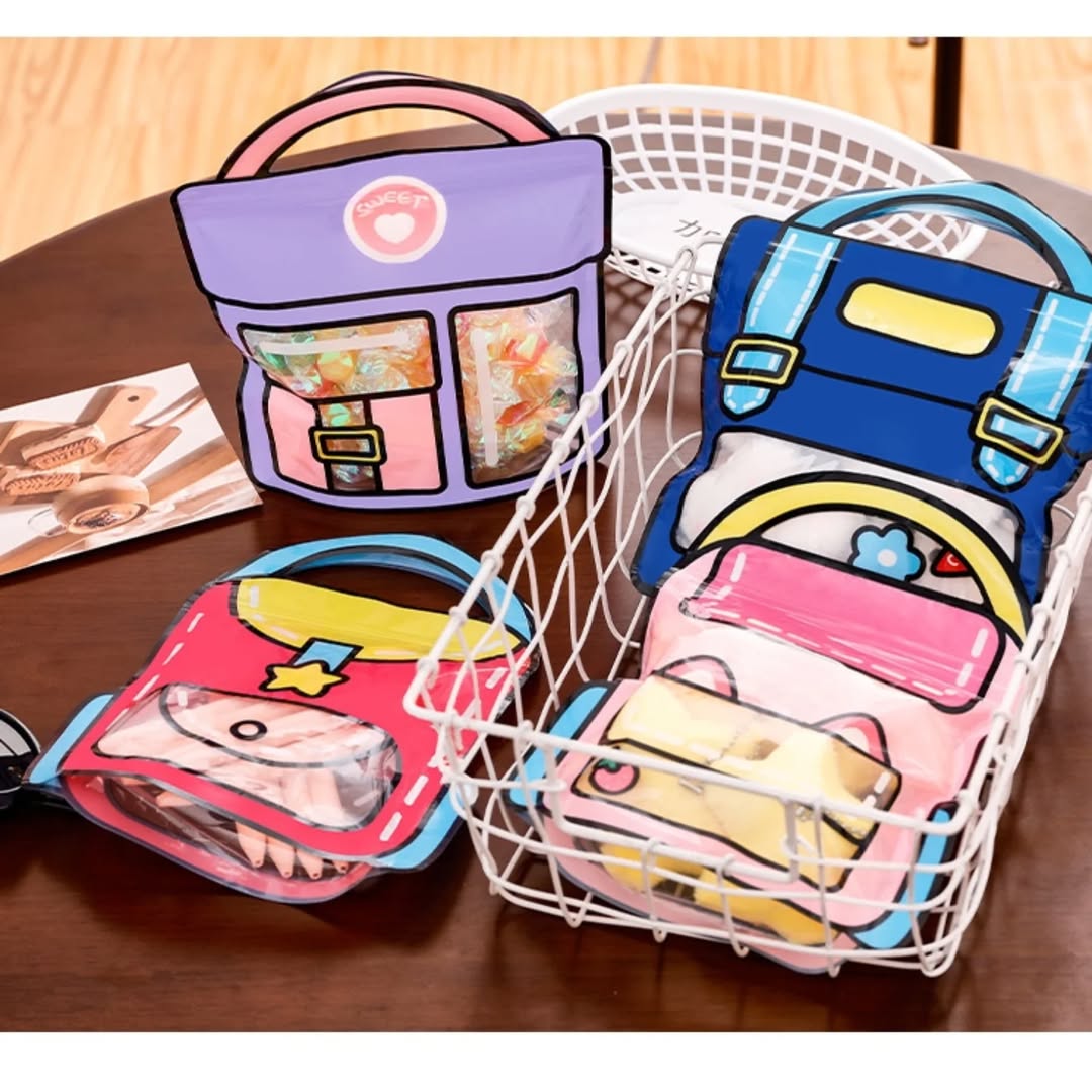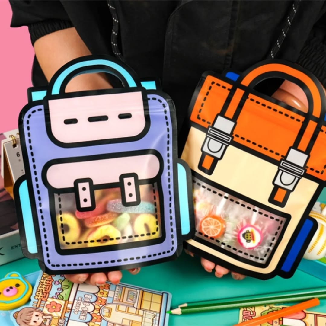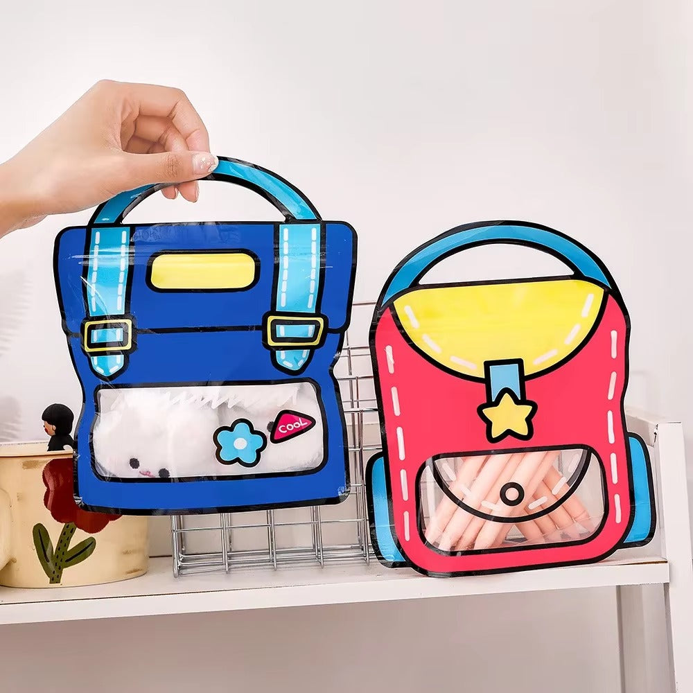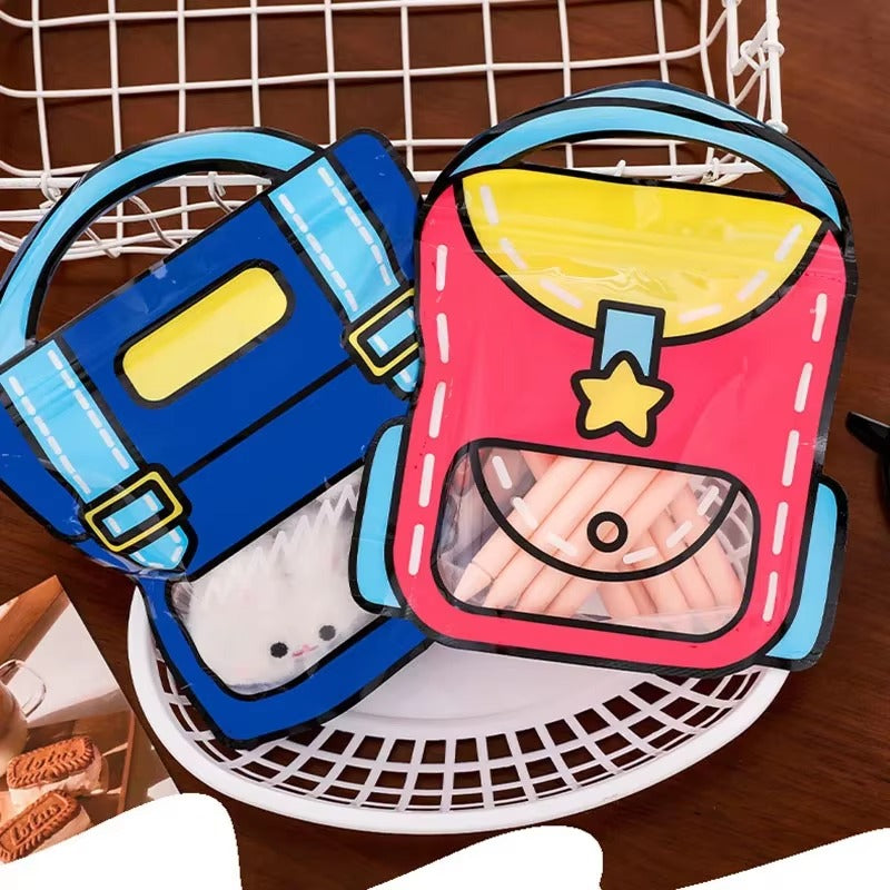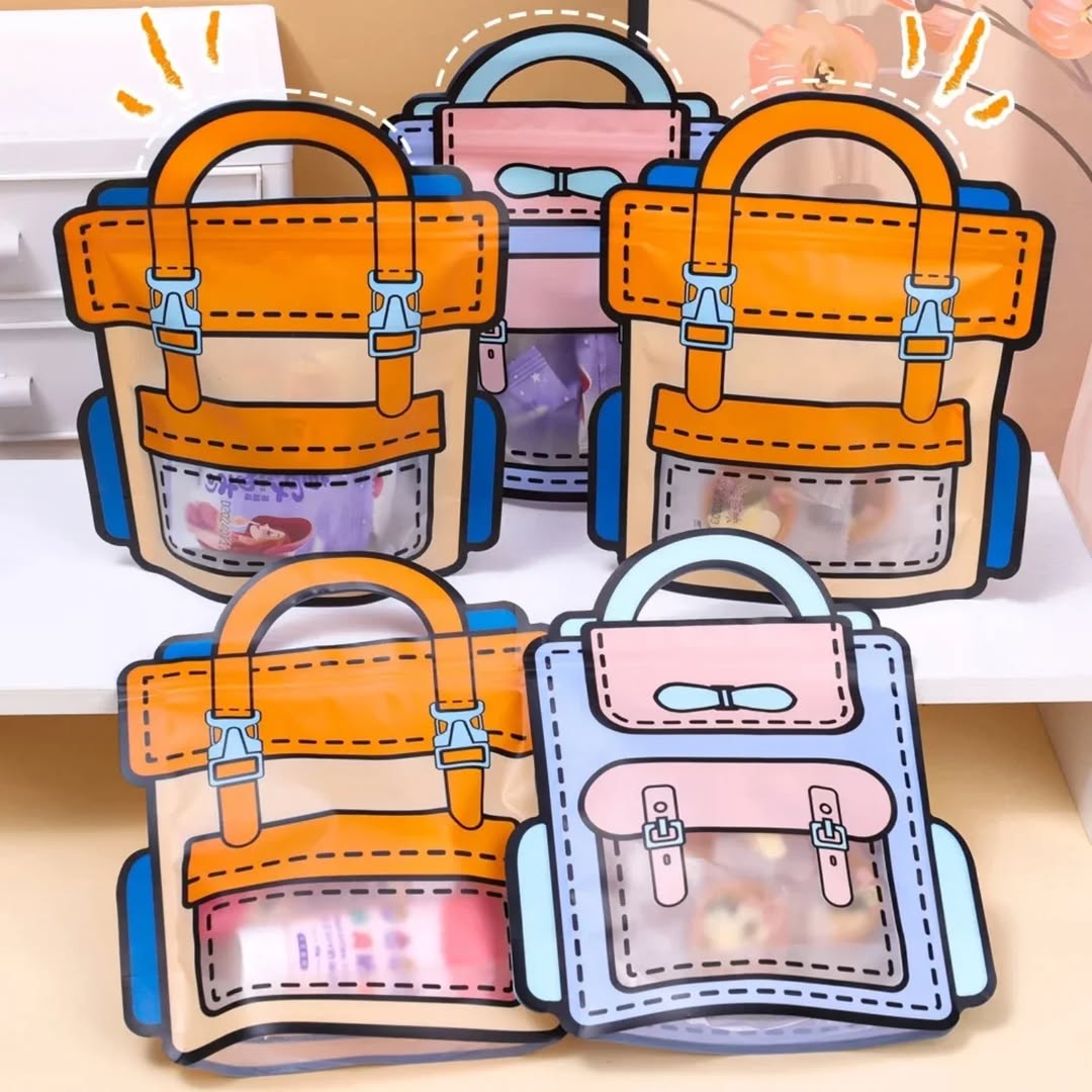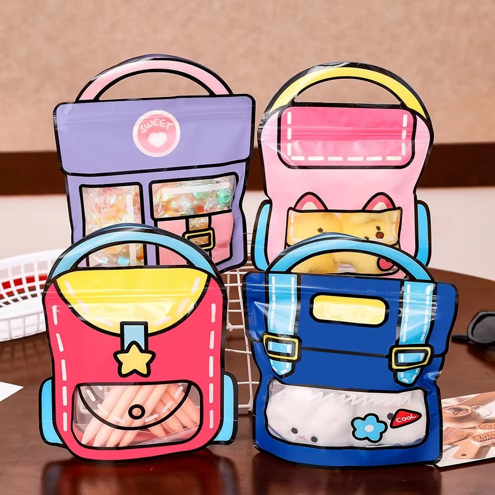 Multipurpose Cute School Bag Shape Zip Lock Seal Packaging Bag 4Pcs Pack