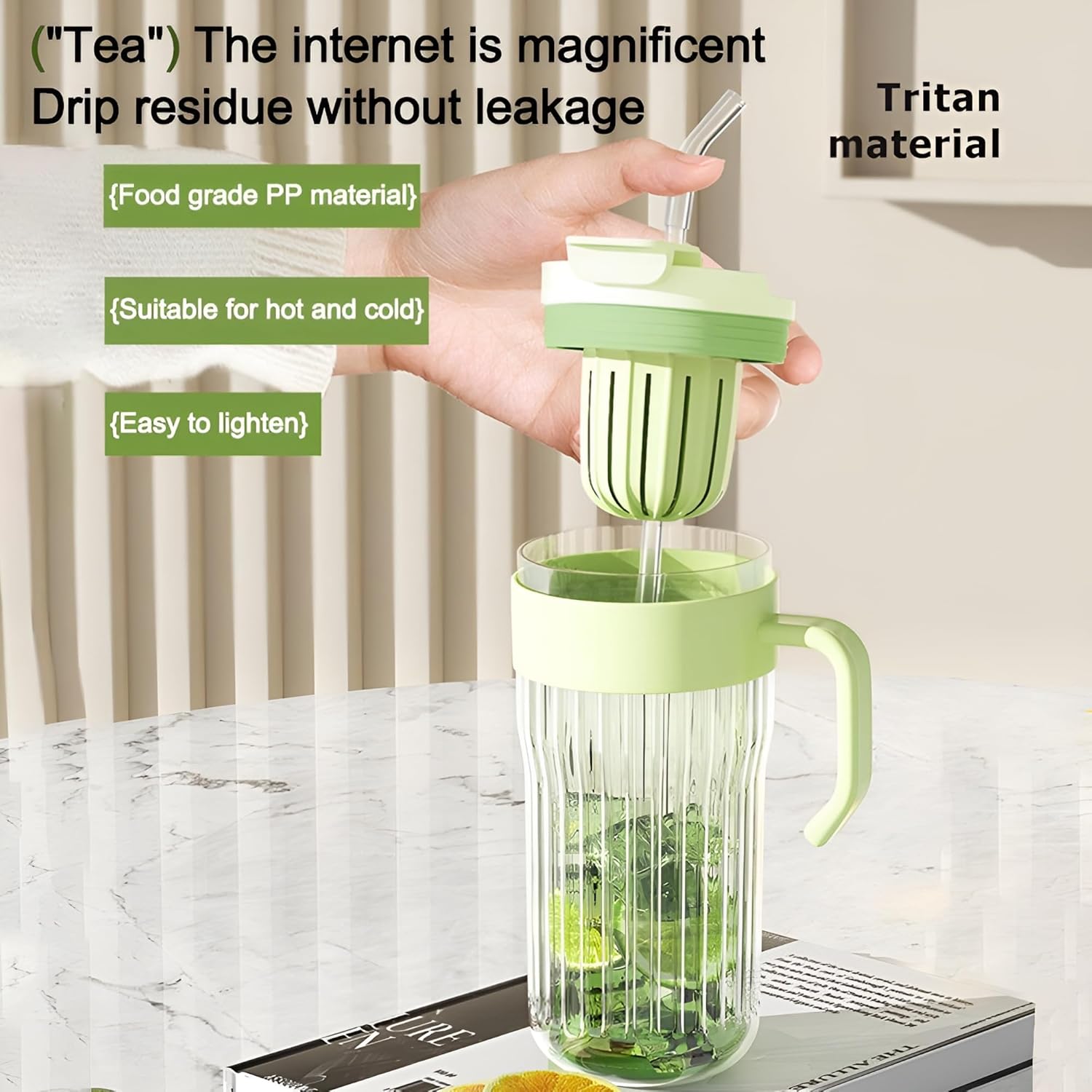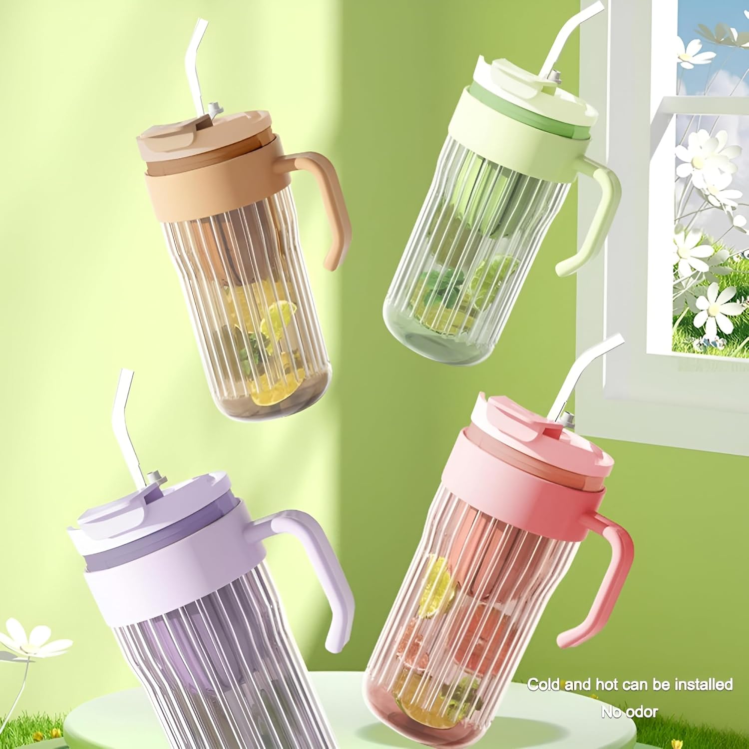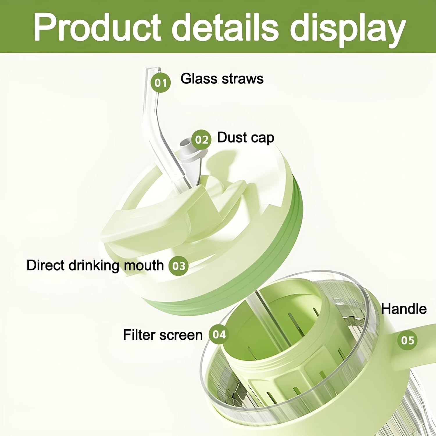 Portable Glass Drinking Cup Water Bottle with Straw & Infuser Large Capacity 550ml