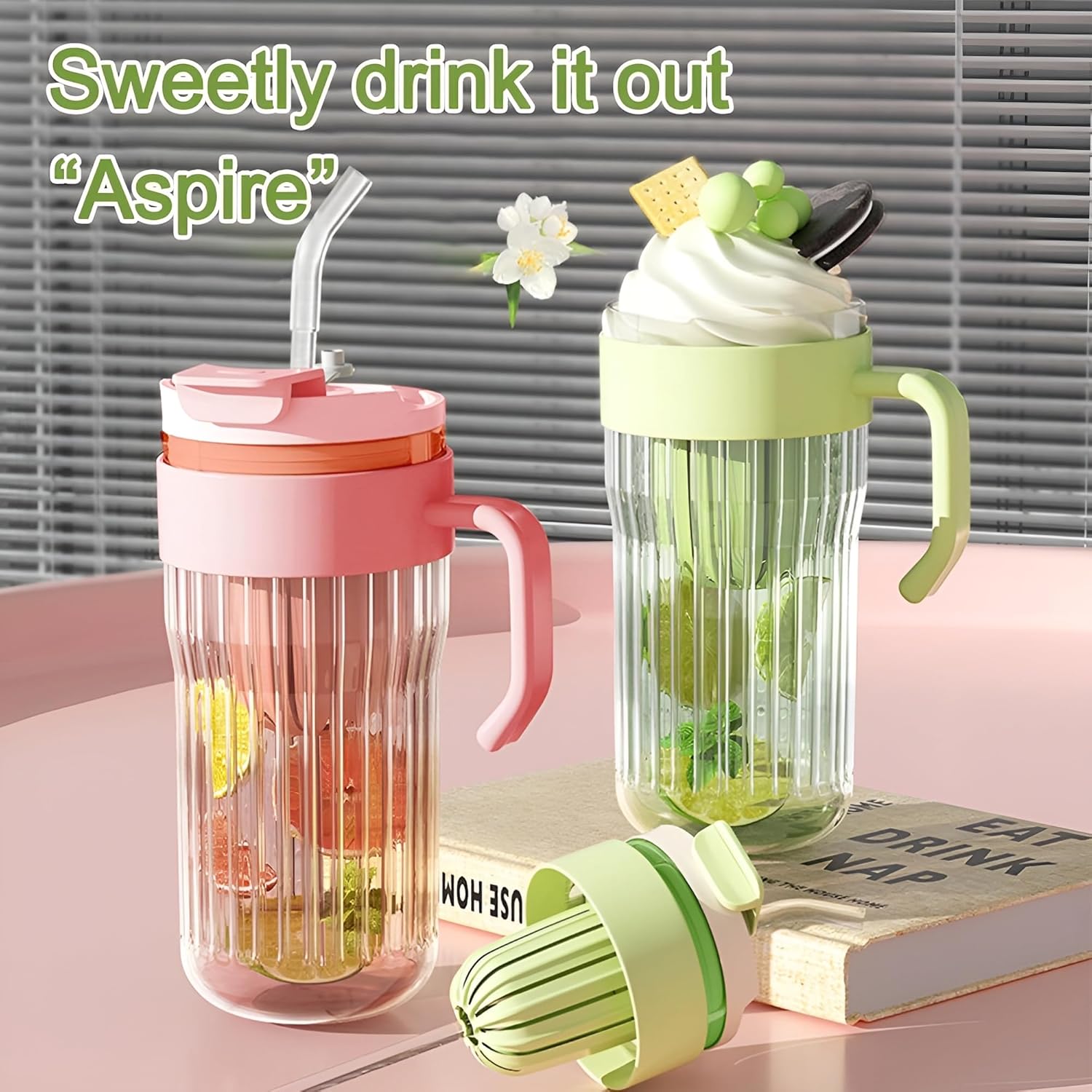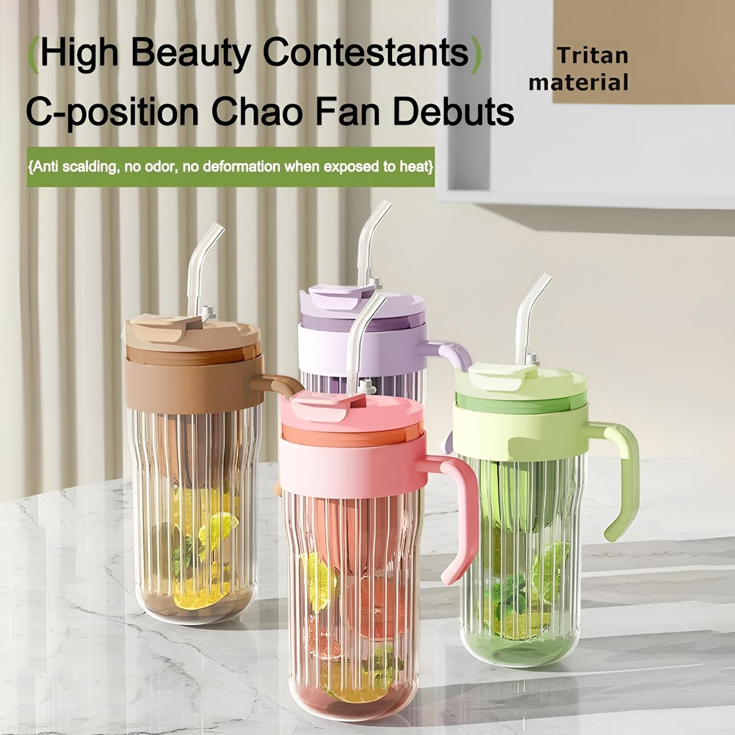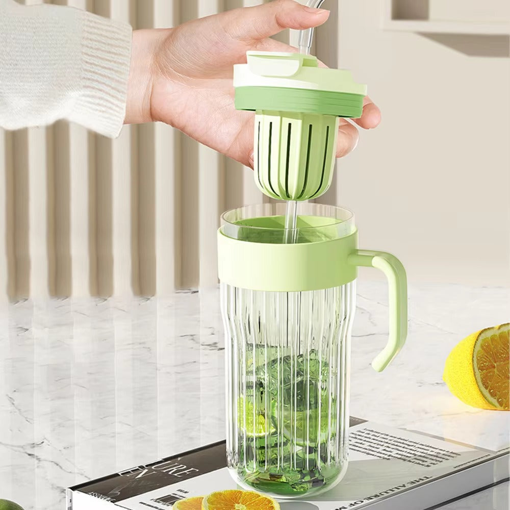 Portable Glass Drinking Cup Water Bottle with Straw & Infuser Large Capacity 550ml