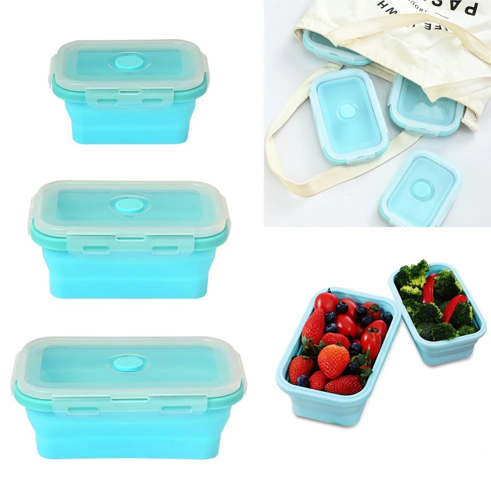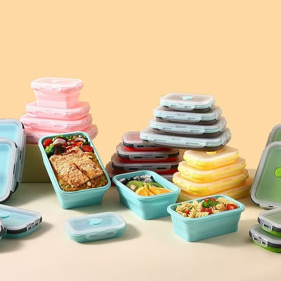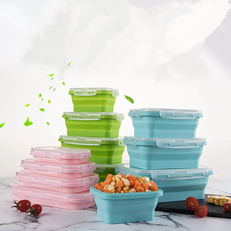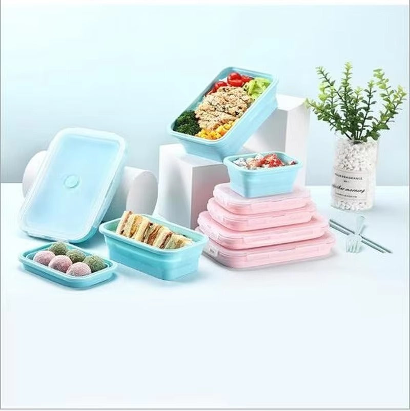 Portable Silicone Collapsible Lunch Box Food Storage Container 4Pcs Set