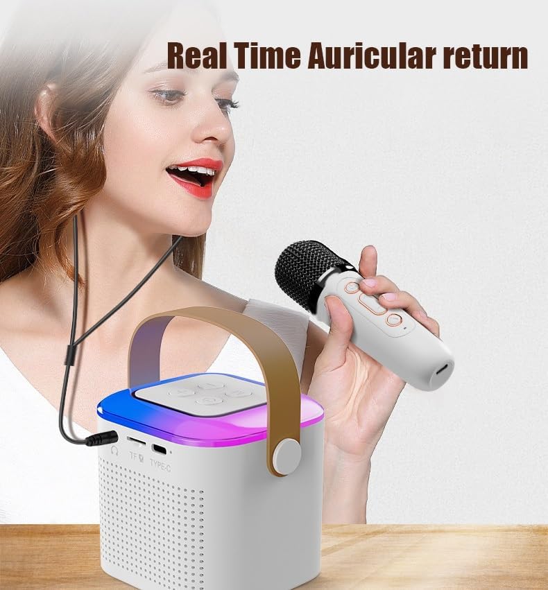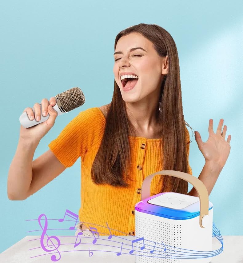【Seamless Connectivity & Compatibility】This karaoke machine for kids & adults has powerful functions. Karaoke machine, portable speaker, music player and party lights all in one! You can also easily connect other devices via Bluetooth, TF, USB drive, AUX.