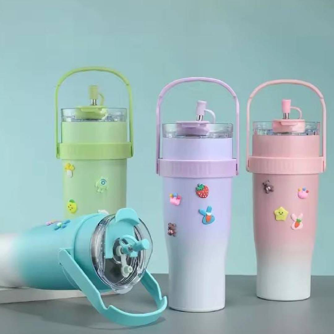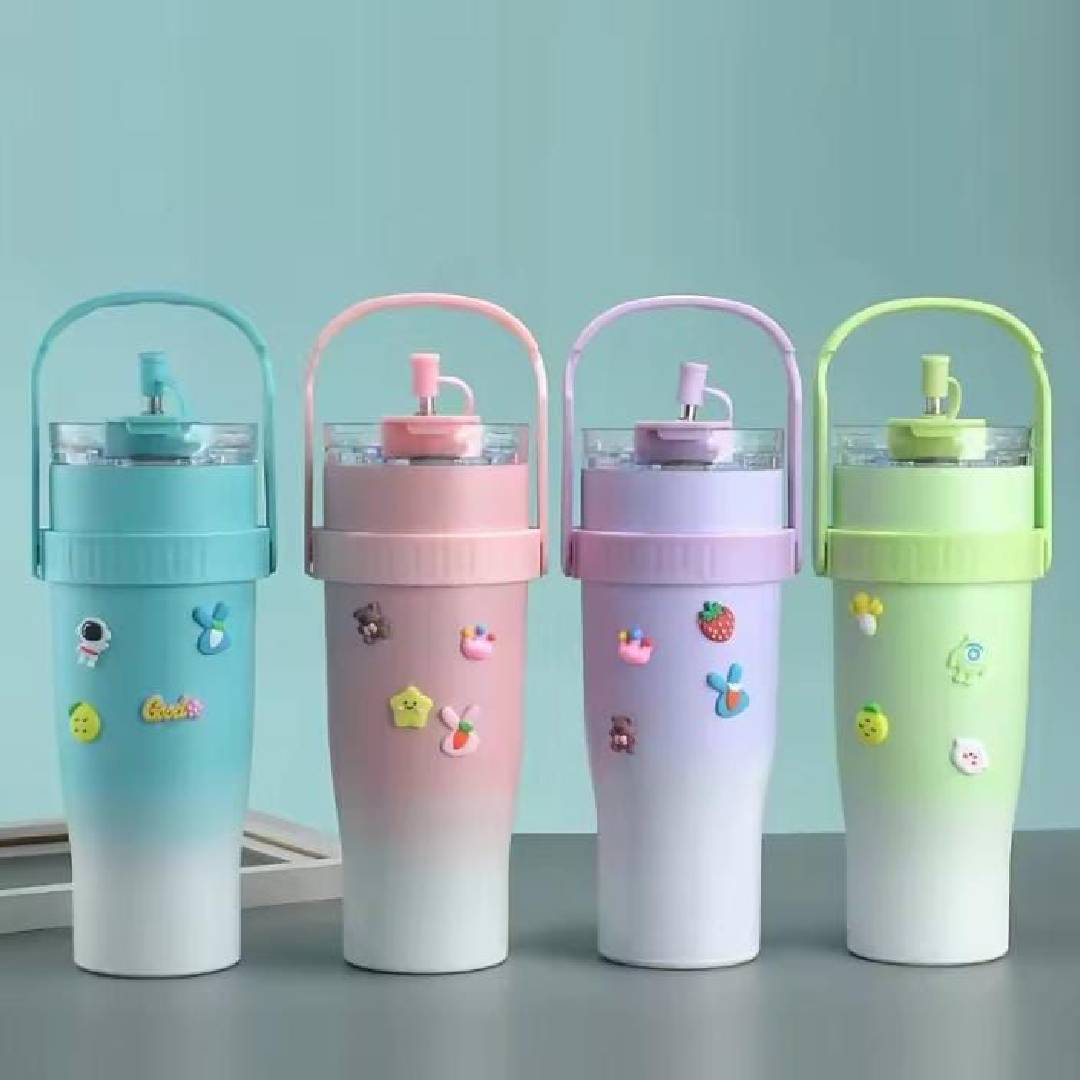 Stainless Steel 40-OZ Insulated Gradient Tumbler With Emojis Lid & Straw Water Bottle