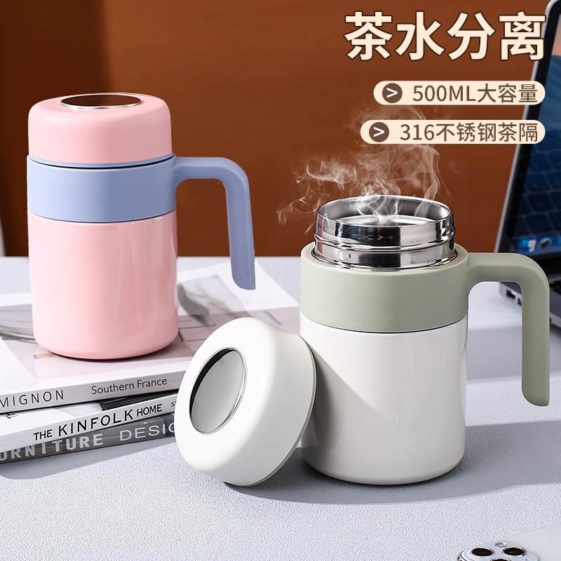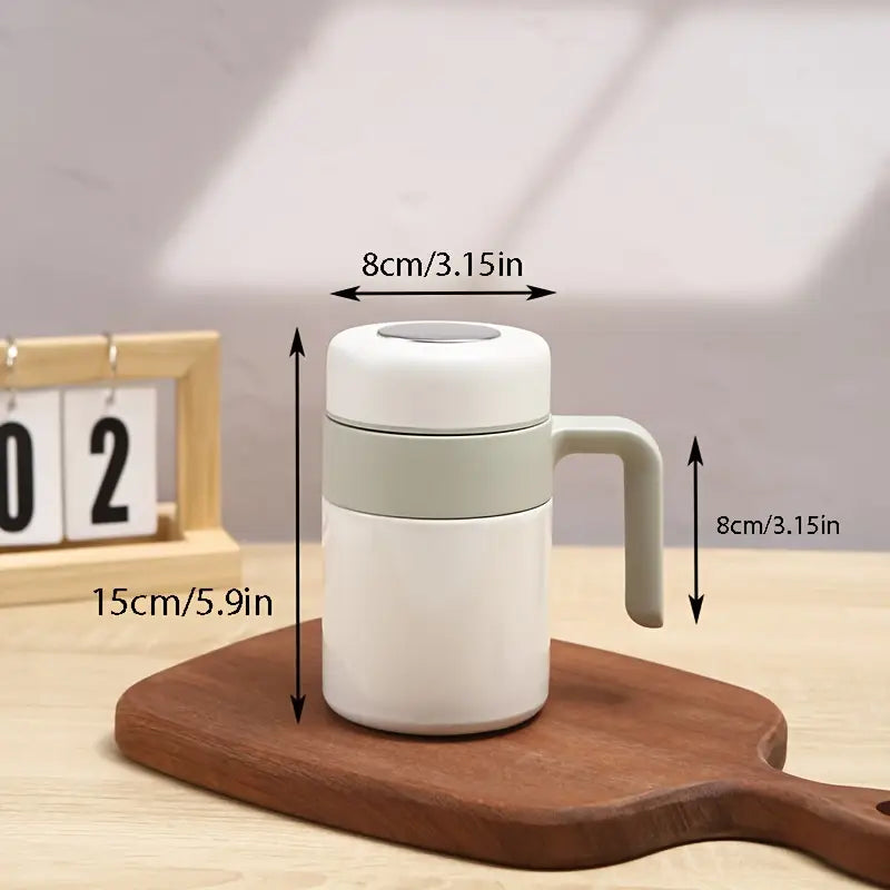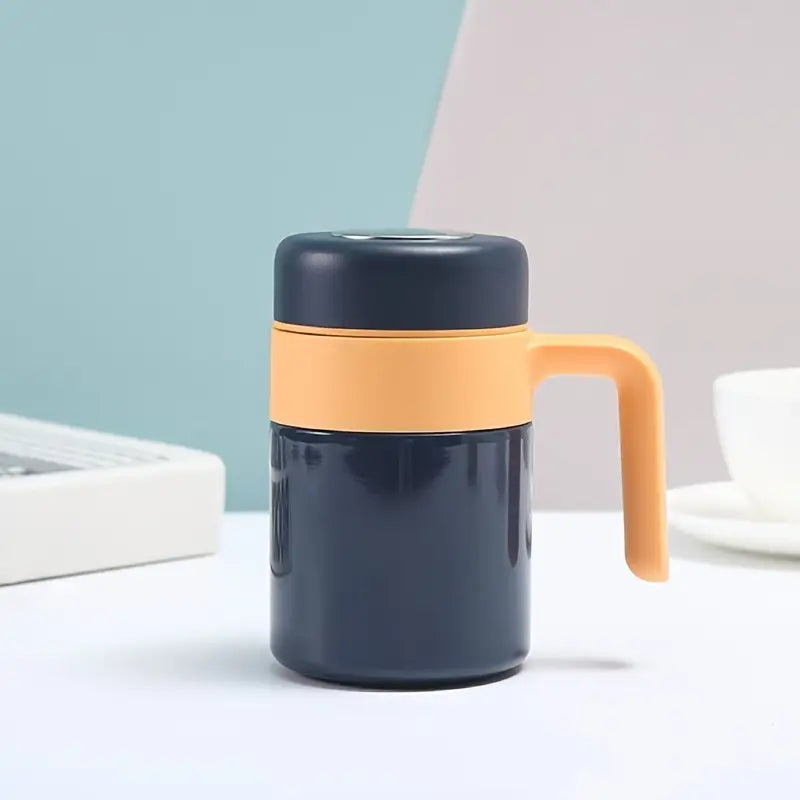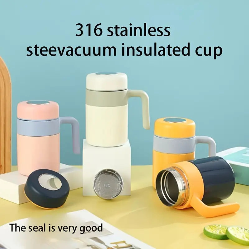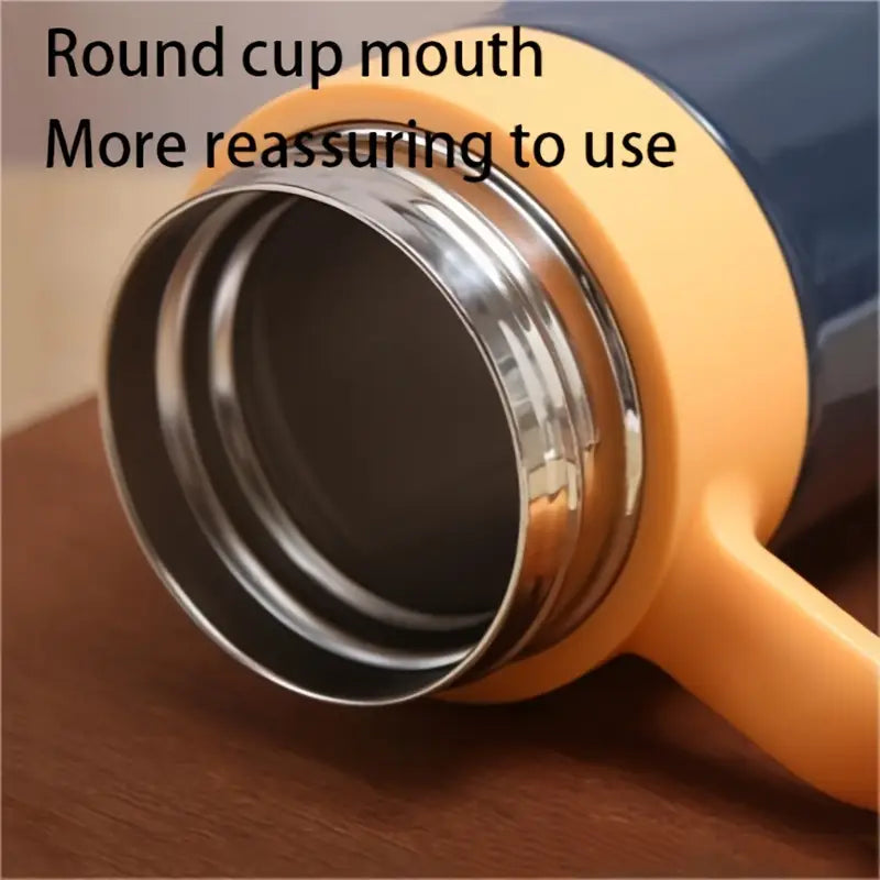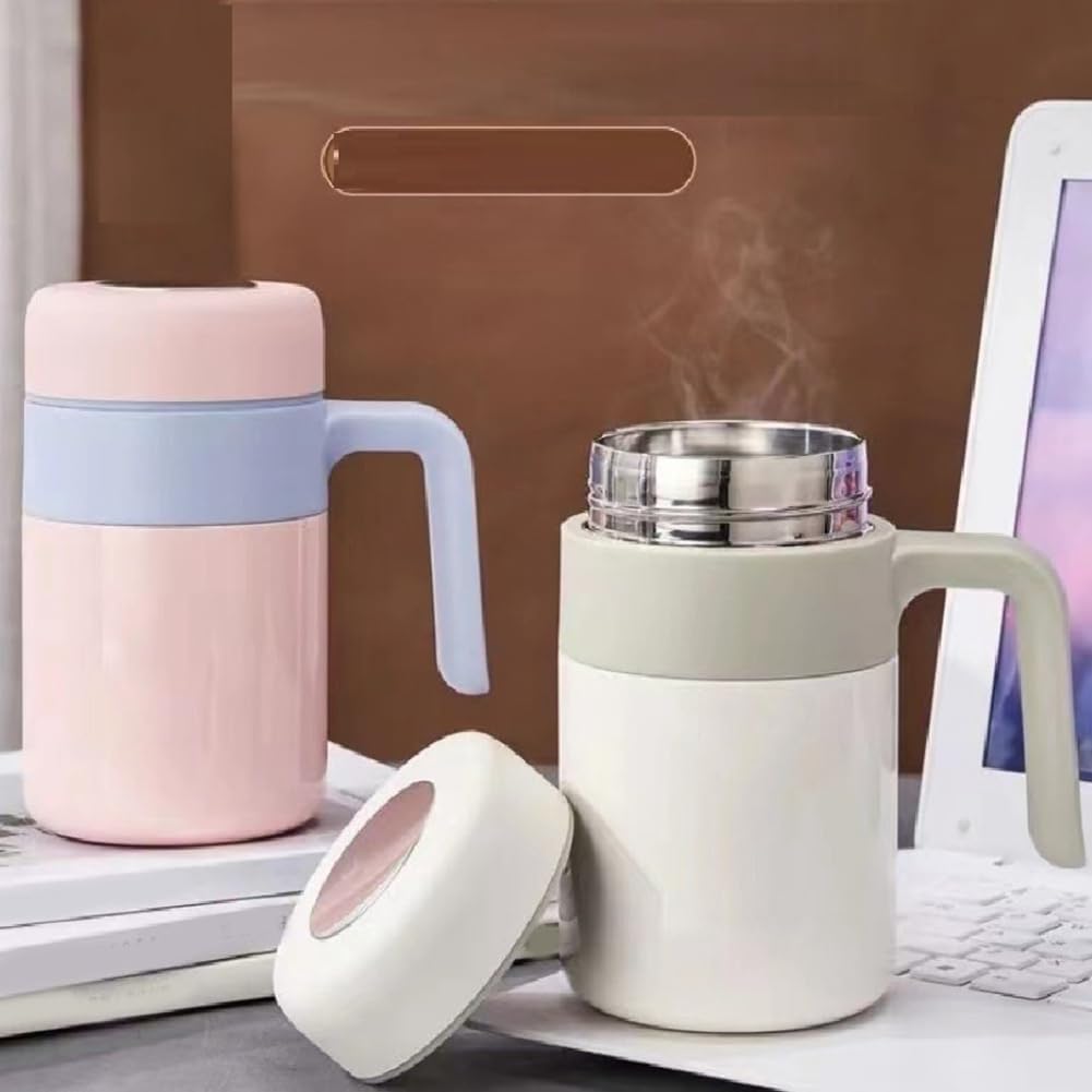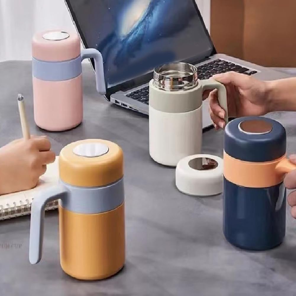 This stainless steel thermos flask mug features a double layer design and vacuum insulation for maximum temperature retention. With a large 500ml capacity and a sturdy handle, it is perfect for keeping your beverages hot or cold while on the go. Stay hydrated and refreshed with this durable and convenient flask mug.