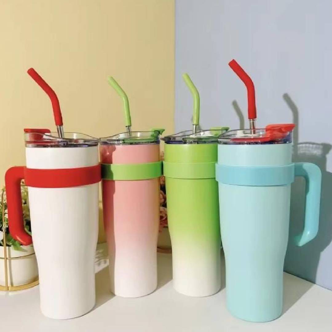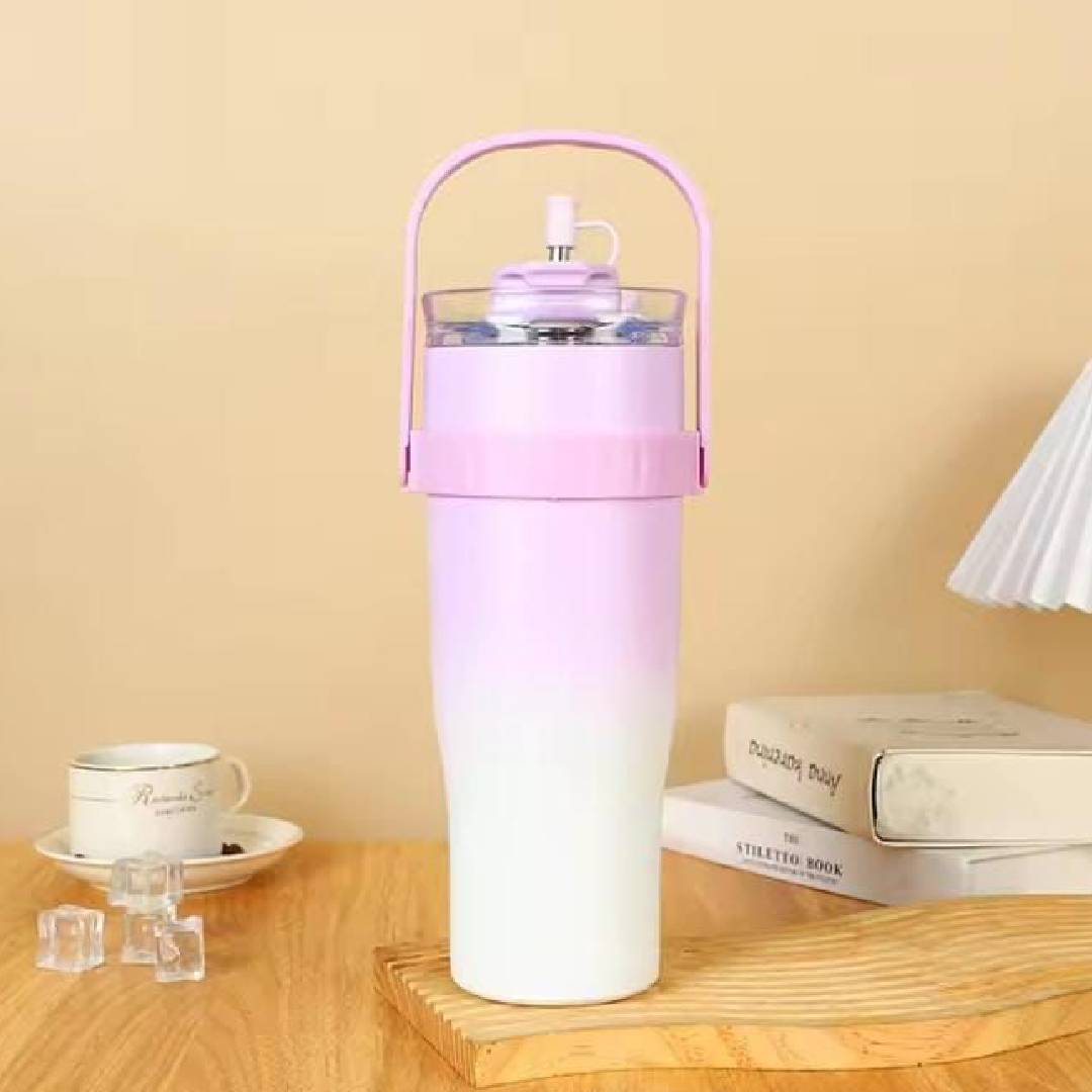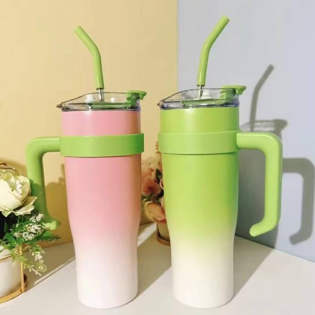 Stainless Steel Gradient Tumbler With Lid & Straw Water Bottle
